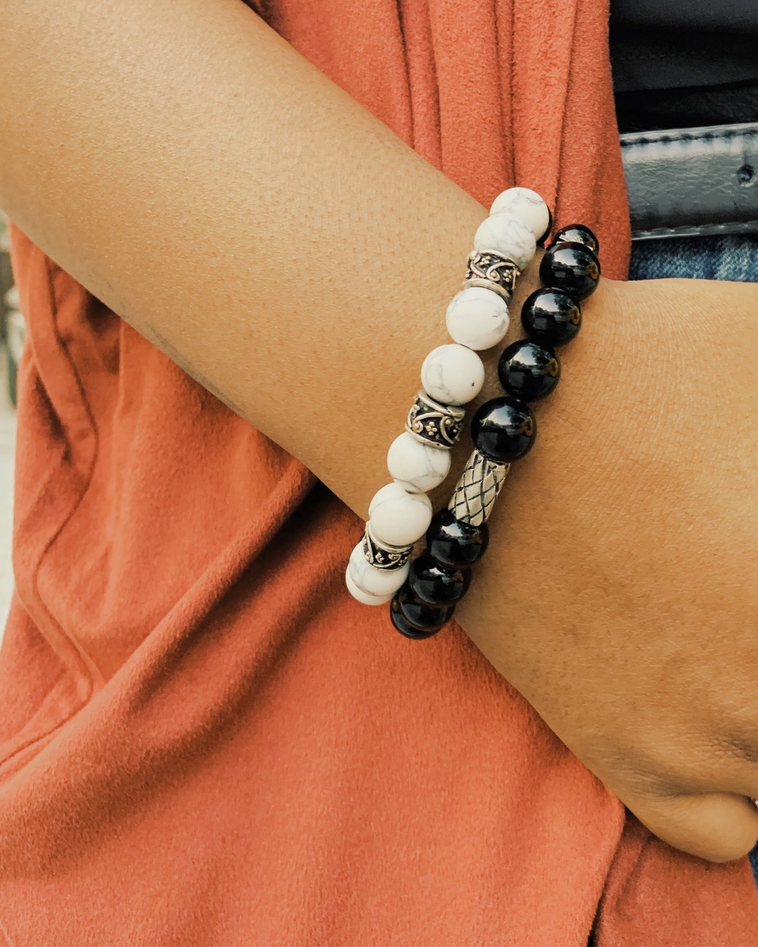 The Zubaida Collection is a stunning fusion of contrast and sophistication, featuring the deep allure of Black Onyx, the marbled beauty of Howlite, and the luminous glow of Moonstone. Designed for those who appreciate bold yet refined style, this collection effortlessly blends modern minimalism with classic elegance.